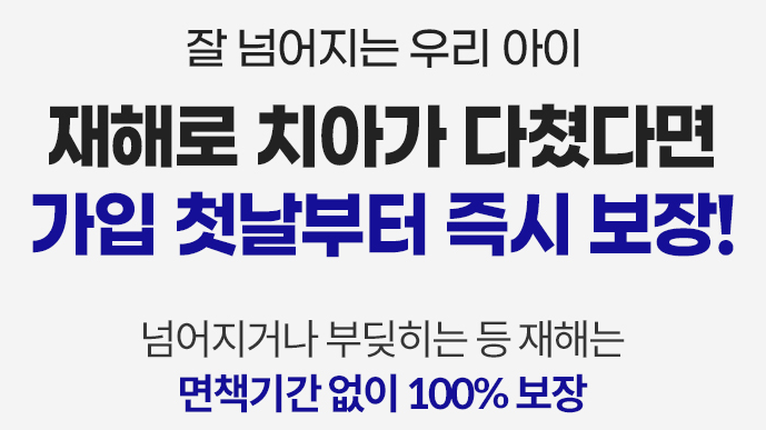 라이나 어린이 치아보험의 장점은 재해로 인한 치아손상시 치과치료보장 개시일부터 감액기간 없이 보험금의 100%를 보장해주는 것입니다. 아이가 넘어지거나 부딪쳐 치아가 다쳤을 경우에는 재해로 인정되어 면책기간 없이 가입 첫날부터 보장을 받을 수 있습니다.