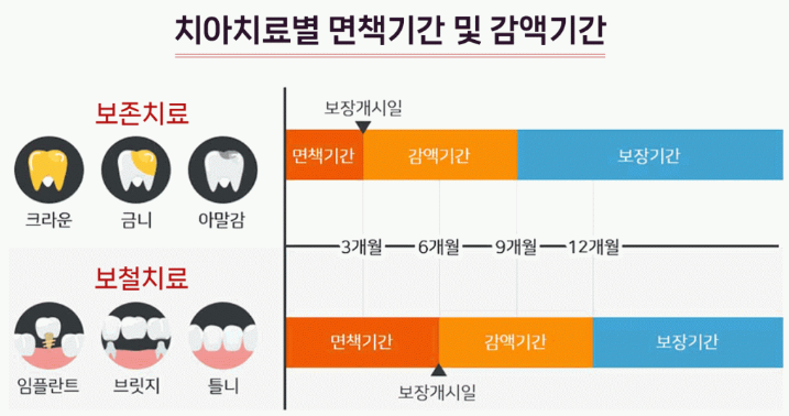 보철치료에 비해 치료 금액대가 낮기 때문에 감액기간과 면책기간이 짧은 편입니다.